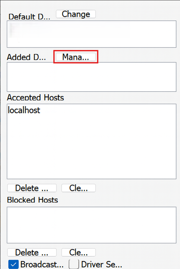 - Once you know the IP address that was assigned to your printer, in Browser Print click the Manage button above the Added Devices window.