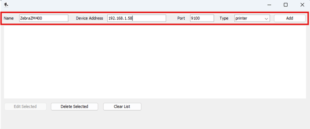 - Fill out your Printer Name, Device Address (use the printer IP address from previous step), Port (use 9100) and then click the Add button.