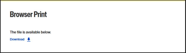 - Click the Download button. Once downloaded, run the installer to install Browser Print and open it once installed. As part of the installation/first time opening process, you may need to Accept/Allow various Permission requests when prompted.